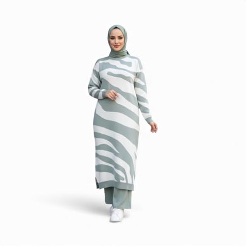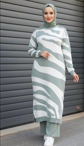 Generic - Womens Mini knitted mini Dress for winter - Long Sleeve - one size up to 85kg - off white & mint green