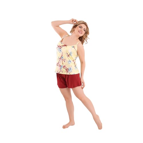 generic - طقم بيجامة للنساء - بيجامة صيفية للنساء - طقم من قطعتين من توب كات وشورت - رسومات مختلفة منقوشة ومصممة خصيصًا لتوفير الراحة والانتعاش أثناء النوم مقاس واحد .. جودة عالية
