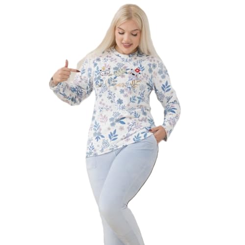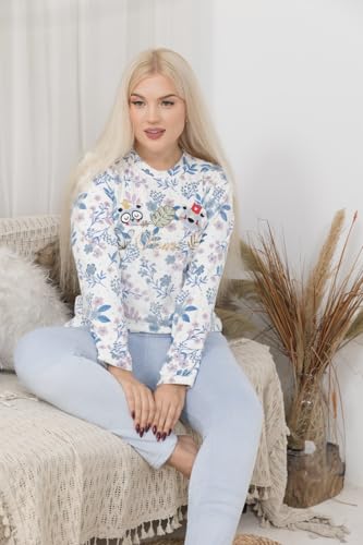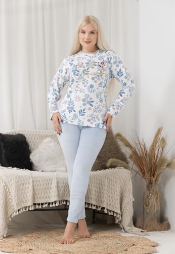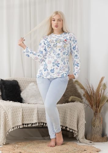 Generic - Womens Winter Pajamas 2 Piece Ribbed Pants Embroidered Plaid T-Shirt Warm Winter Pajamas Set for Women.