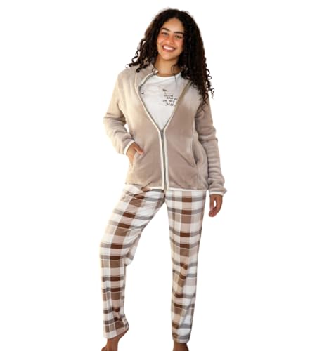 Generic - Womens Winter Velvet Pajama Sleeve T-Shirt Zipper Jacket and Checkered Pants