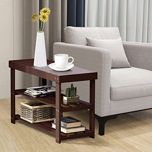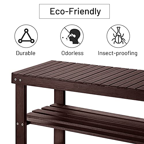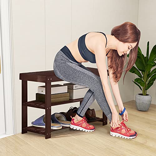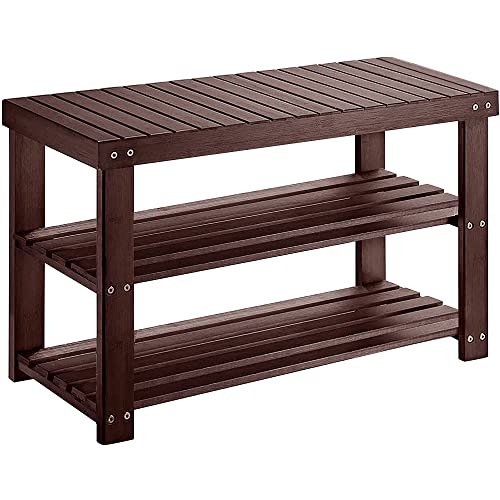 Wonder Comfort - وندر كومفورت رف احذية من 3 طبقات من الخيزران لتنظيم وتخزين الحمام والمدخل والممر وغرفة المعيشة، بني