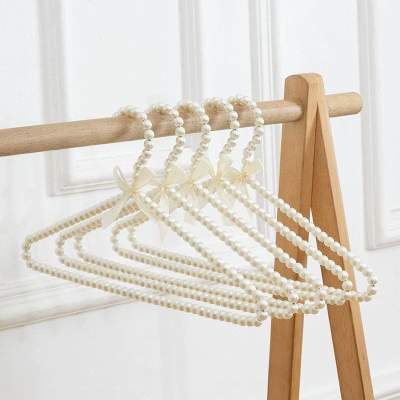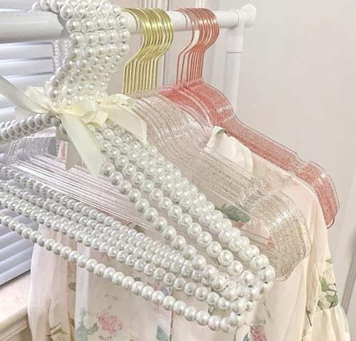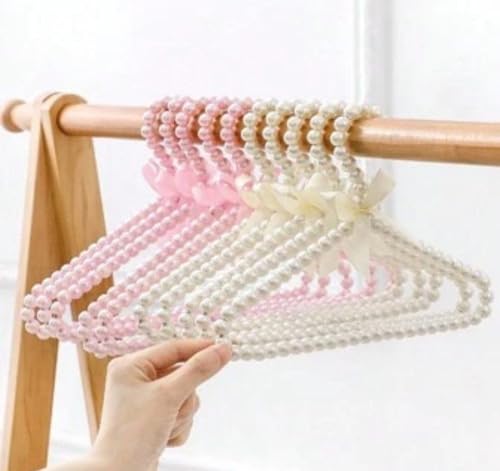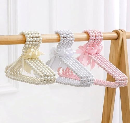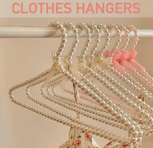 Generic - شماعات لؤلؤ بيضاء رائعة مع فيونكة من الساتان الرقيق لتعليق الملابس الداخلية والبلوزات الخفيفة في الخزانة، أساسية لكل عروس، عبوة من شماعتين