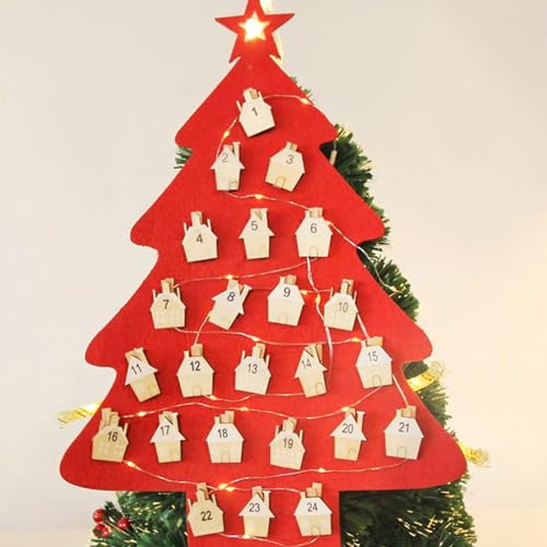 Wonka - Wonka Christmas Calendar Decoration 24 Day Countdown Calendar Felt Christmas Tree With Light Farmhouse Ornaments Accessory