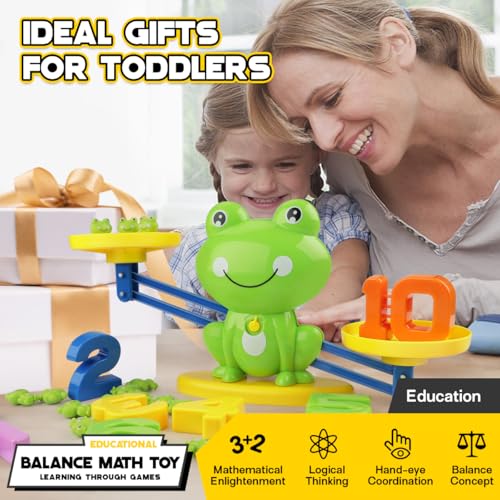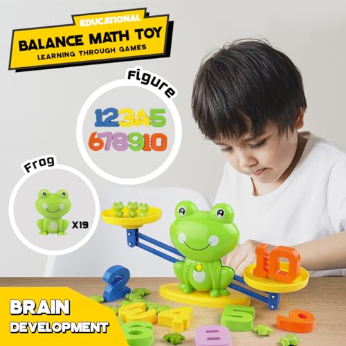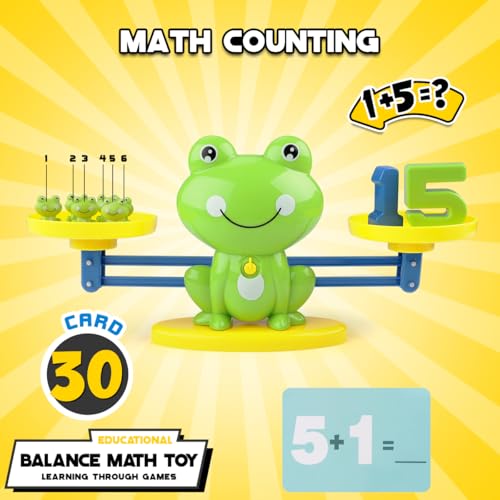 GILOBABY - لعبة لتعليم التوازن الحسابي للأطفال الصغار، لعبة تعليمية وهدية لعد الأرقام للأولاد والبنات من عمر 3-9 سنوات، لتنمية مهارات الرياضيات للأطفال، تتضمن ضفدع وبطاقات وأرقام من جيلوبيبي