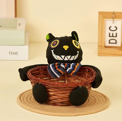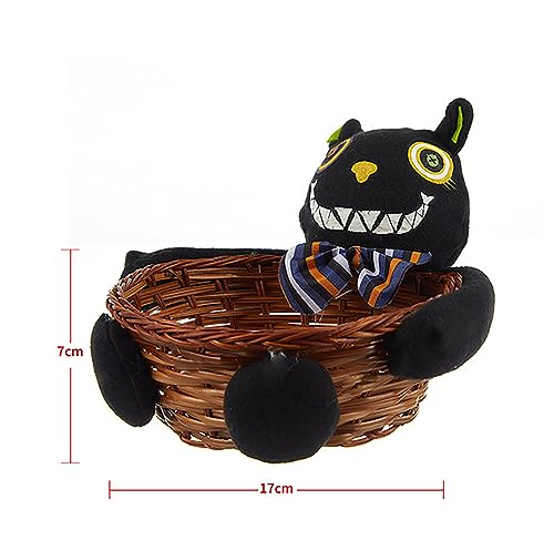 PTUANZRIT - Wonka Halloween Candy Bowl Dish Pumpkin Ghost Black Cat Candy Basket Halloween Rattan Candy Storage Basket Holiday Tired Tray Decor Spooky Decorations Sugar Snack Tray for Party Supplies Gift (1PCS, C