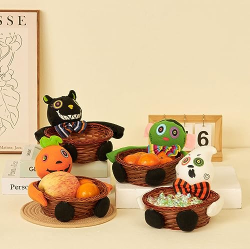 - Quality Materials: Halloween candy storage basket is made of premium doll and rattan basket base, durable, environmentally friendly and safe. It can ensure its durability and practicality. Pumpkin ghost candy basket, halloween decoration candy bowl dish can easily meet your Halloween party candy supply and table decorative needs, adding a strong festive atmosphere to your Halloween.