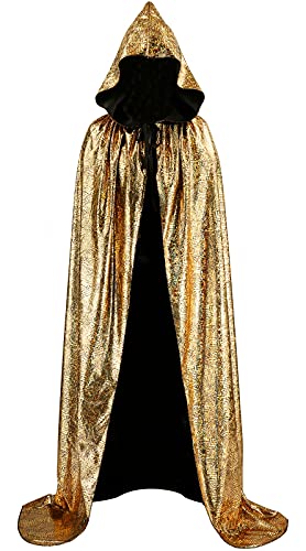MeiLiMiYu - Wonka MeiLiMiYu Hooded Cape Cloak Halloween Costume Cape Witch Hooded Cloak for Men and Women, Golden, One size