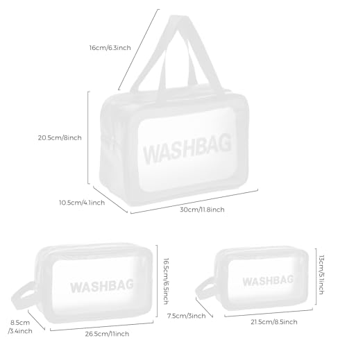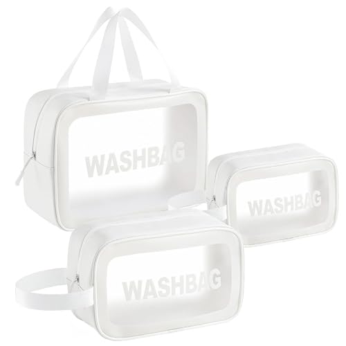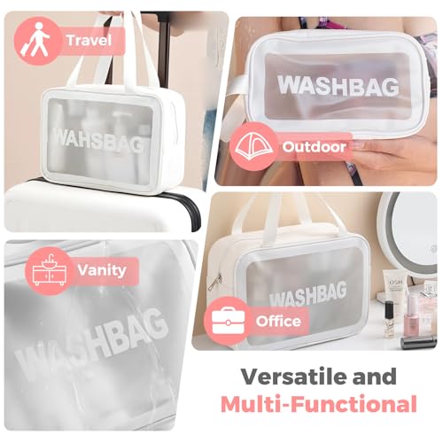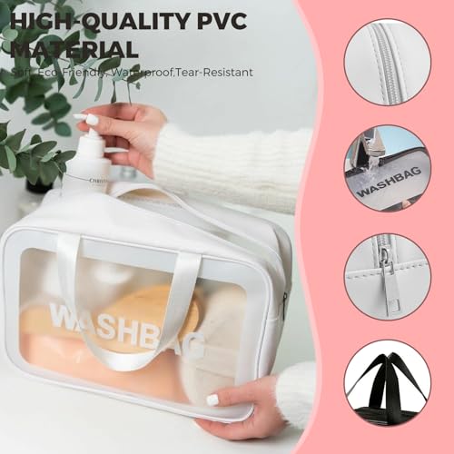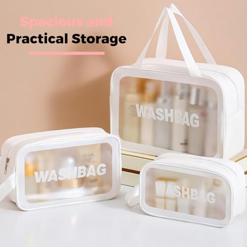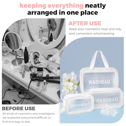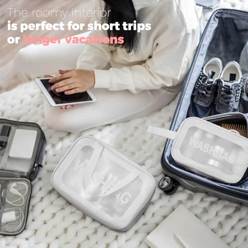 Woobroo - Clear Travel Toiletries Bag for Women, 3 Pack Toiletry Bags with Zippers Travel Essentials PVC Waterproof Cosmetic Clear Wash Bag for Girls