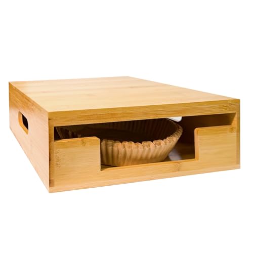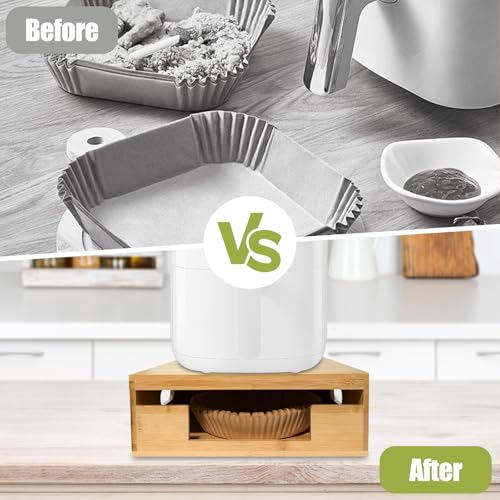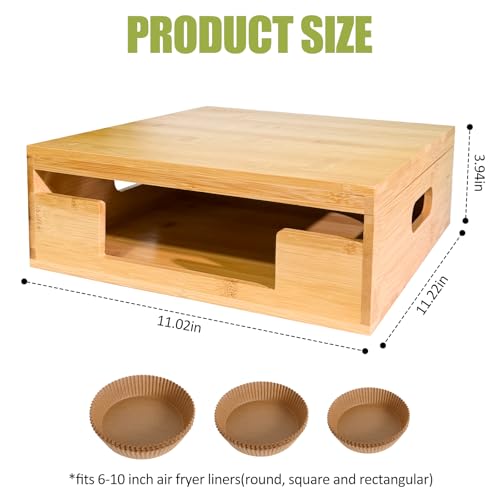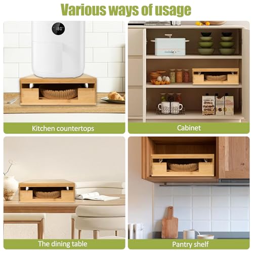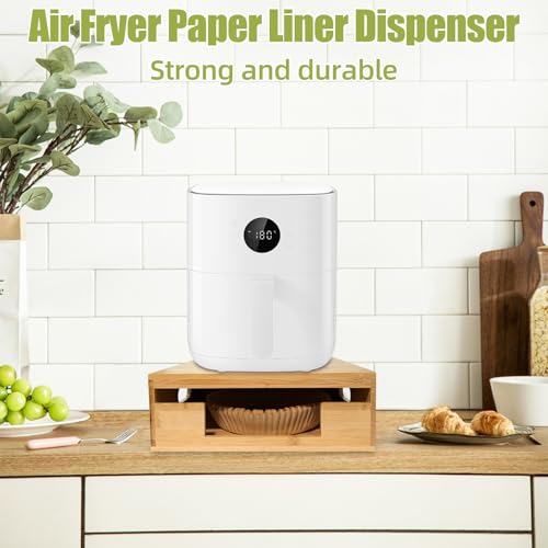 SECOAT - موزع بطانة للمقلاة الهوائية من الخشب مقاس 6-10 انش للاستعمال مرة واحدة، حاوية تخزين وتنظيم الخزانة، موزع اطباق ورقية للمطبخ يناسب ورق المقلاة الهوائية المستديرة والمربعة