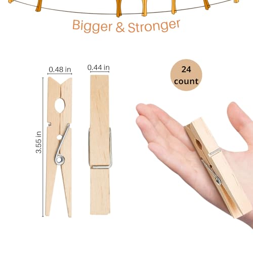 LOTIMOYIA - دبابيس ملابس خشبية من خشب البتولا الطبيعي، قبضة قوية، مشابك ملابس خارجية شديدة التحمل لتعليق الملابس والفنون والحرف اليدوية وعروض الصور، 3.55 انش، عبوة من 24 قطعة
