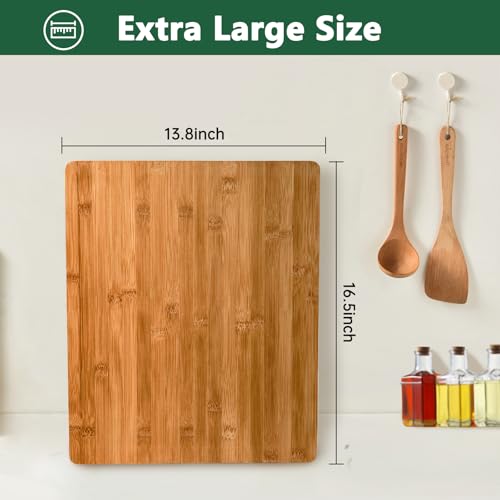 ZJYOUZHU - لوح تقطيع خشبي للمطبخ، لوح تقطيع من الخيزران، لوح تقطيع خشبي كبير، الواح تشاركوتيري للجبن، لوح تقطيع من الخيزران العضوي بنسبة 100% للحوم والخضروات والفواكه، 16.5 × 13.8 انش