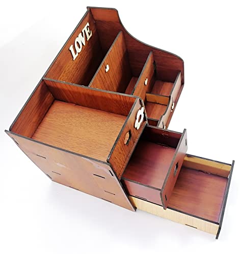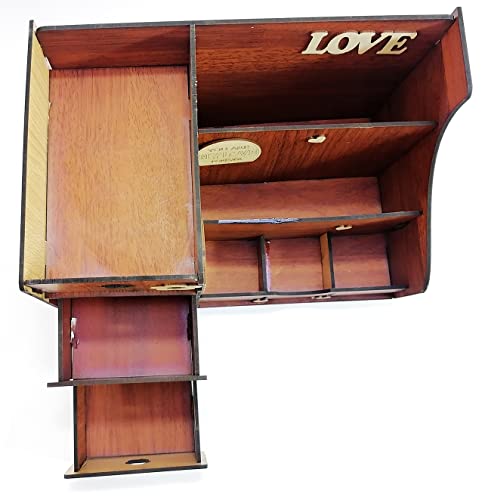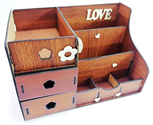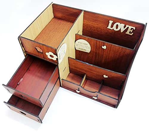 generic - منظم مكياج و منظم مكتب Wood Decor Light Brown Chocolate Chic Wood Office Organizer and Toiletry Organizer Library