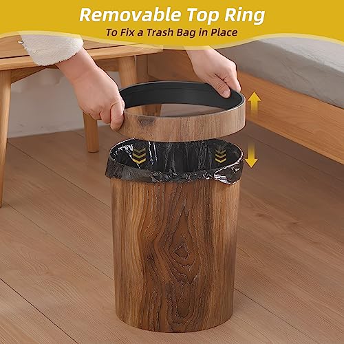 Ciao Stilista - Wood Grain Plastic Trash Can Bedroom, Round 2-Pack, 3.4 Gal Farmhouse Wastebasket Bin Retro Style, Brown Trash Can for Room Aesthetic, Open Top Garbage Can for Office, Living Room, Hotel, Bathroom