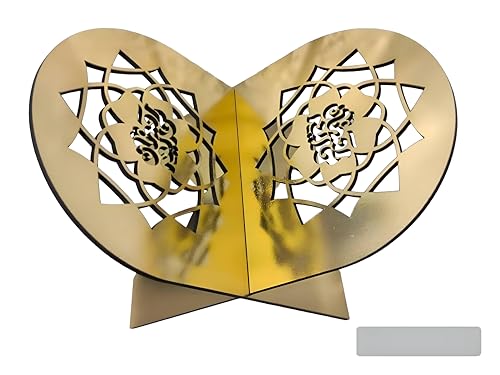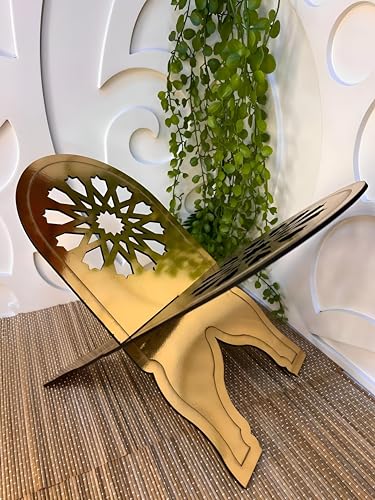 Generic - Wood Mushaf Holder-A thick, gold-colored Mushaf Reading Holder, with engraved laser details, a solid structure and a luxurious axis that adds to Ramadan, dignity and beauty in the place of prayer