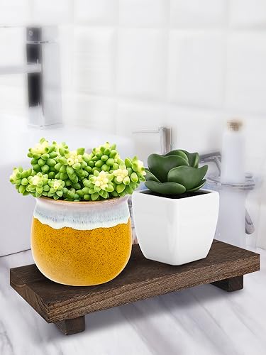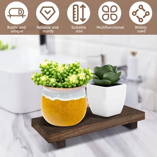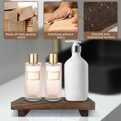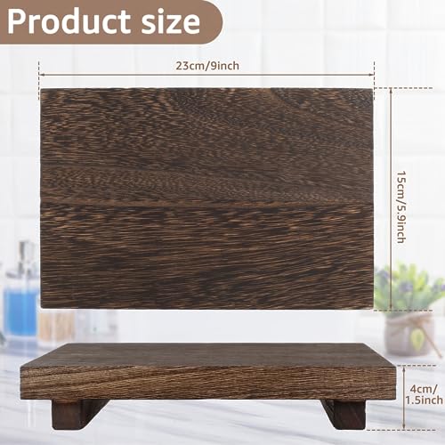 Eummy - Wood Pedestal Stand, Anti-Slip Wood Riser Soap Tray Farmhouse Wooden Riser Soap Stand Vintage Kitchen Sink Tray Decor Wood Riser Candle Plant Tray for Bottle Makeup Tissues 9x5.9x1.57inch(Burning)