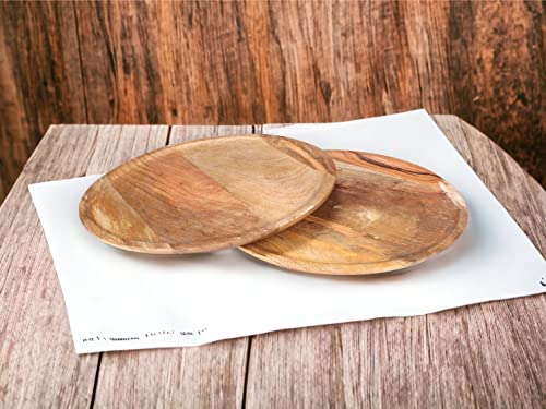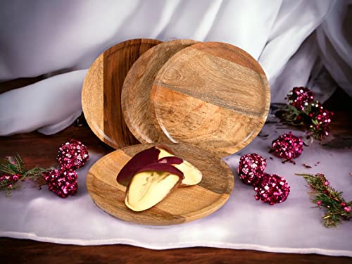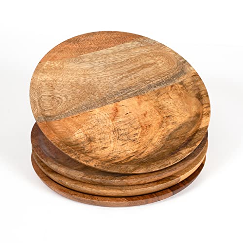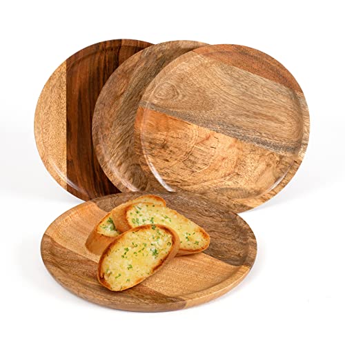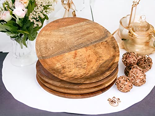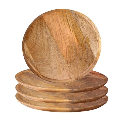 Alpha Living Home - أطباق تقديم خشبية للمقبلات - أدوات مائدة دائرية بتصميم ريفي لعيد الشكر، قطعة مركزية للطاولة، أواني مائدة العشاء للسندويشات والسلطة والأطعمة بالأصابع والجبن والبرجر - عبوة من 4 قطع 22.86 سم - طبيعي