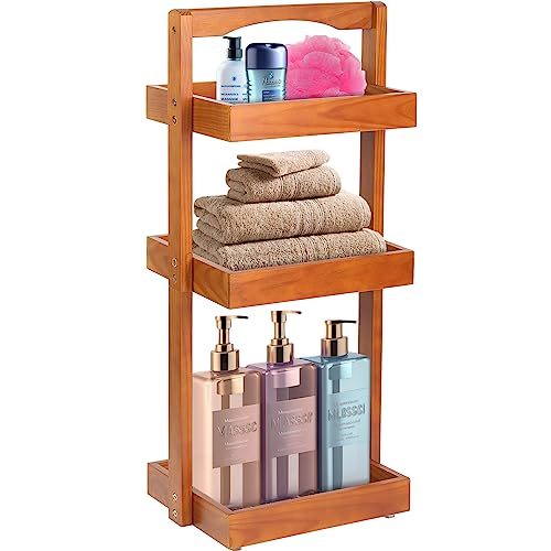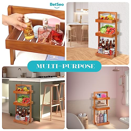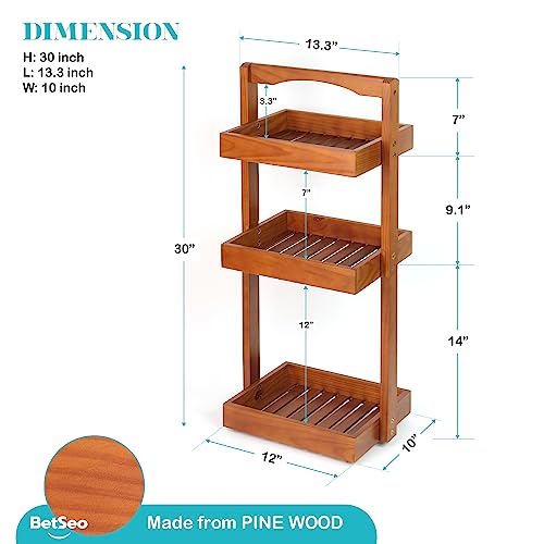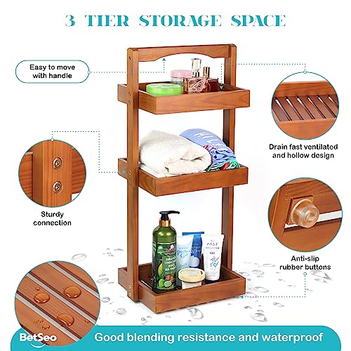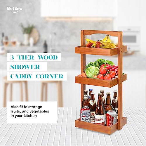 BETSEO - Wood Shower Caddy Corner, 3 Tier Pine Wooden Standing Shower Organizer with Handle, Bathroom Stand Up Shower Shelf Caddy Basket for Shampoo, Rack for Shower for Bath, Fruit basket for the Kitchen...