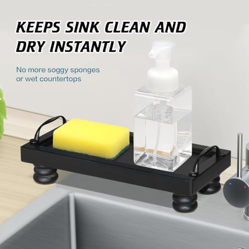Ruthynow - Wood Soap Stand for Bathroom, Farmhouse Display Riser for Sink Decor, Soap Dish Holder for Kitchen, Soap Tray for Countertop, Black