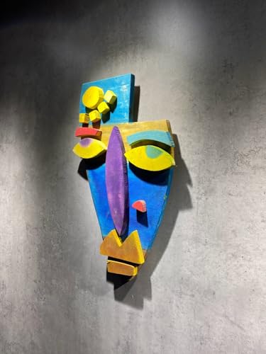 wood workers - wood workers abstract rustic face wall panel, wooden aztec office home artwork for walls, large contemporary above bed wall hangings decor, slat modern sculptures for living room bedroom dining