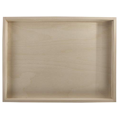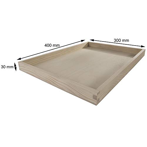 WooDeeDoo - WooDeeDoo Rectangular Shallow Display Open Box Container | Serving Tray | Desk Organiser | Large 40 x 30 x 3 cm | Untreated & Unpainted Plain Decorative Pine Wood