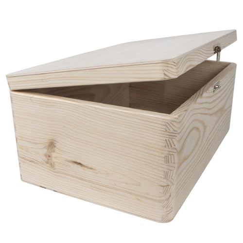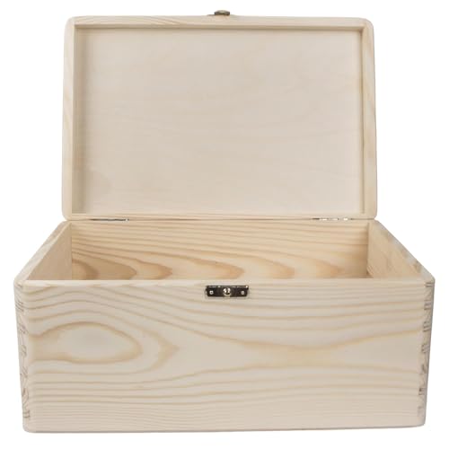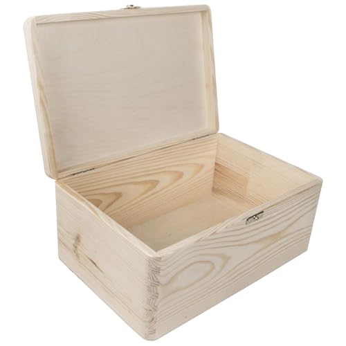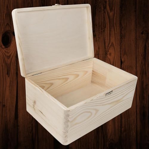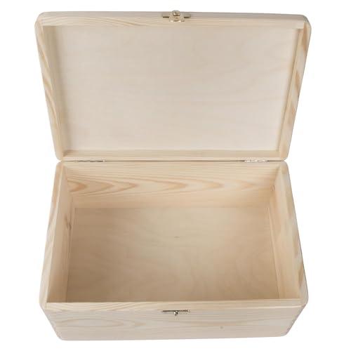 WooDeeDoo - WooDeeDoo Wooden Storage Box with Lid and Gold Clasp | 30 x 20 x 13 cm | Plain Unpainted Decorative Lidded Chest Keepsake Memory Trunk | Box for Craft Decoupage | Christmas Eve Box