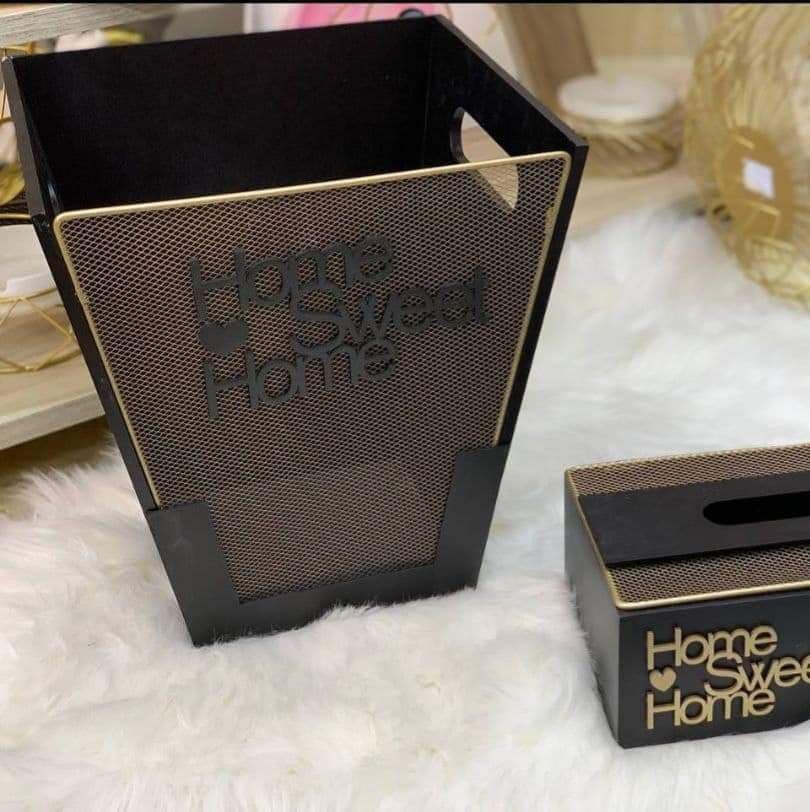 - Wooden Basket And Tissue Holder ( HOME SWEET HOME) From FLAMINGO - BLACK