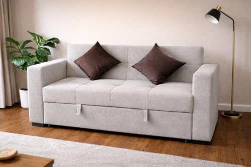 Generic - Wooden Bed Sofa with Velvet Upholstery, Beige, 2 Seater, 3 Levels, 77x153x82 cm