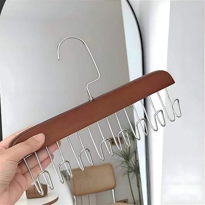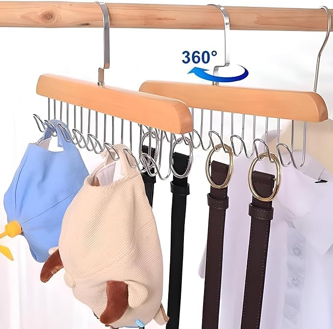 - تصميم بـ 8 خطافات: تتميز بـ 8 خطافات معدنية متينة توفر مساحة تخزين واسعة للأحزمة وربطات العنق والأوشحة والملابس الداخلية وغيرها من الملحقات، مما يحافظ على خزانة ملابسك منظمة وخالية من الفوضى