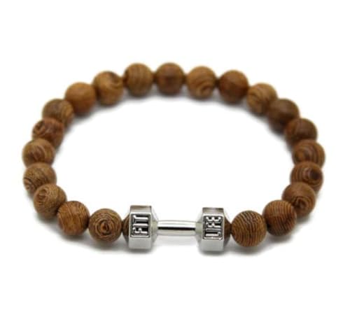 generic - Wooden bracelet with a silver dumbbell