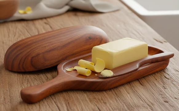 - PREMIUM NATURAL WOOD: Handcrafted butter dish set made from natural wood with beautiful grain patterns, adding rustic elegance to your dining table