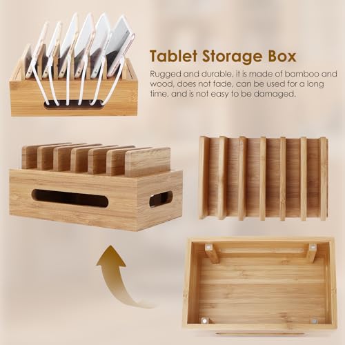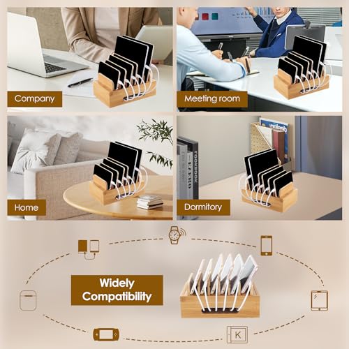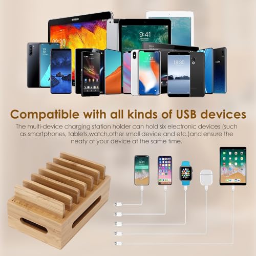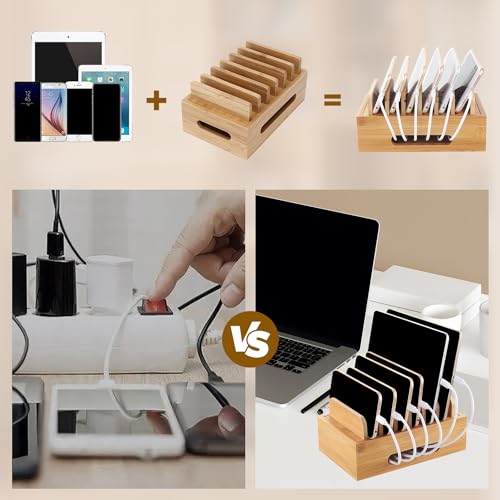 - MULTI-DEVICE STORAGE HOLDER: The multi-device charging station holder can hold six electronic devices (such as smart phones, tablets, etc.) at the same time, while ensuring your devices are in order. With this charging base and storage box, life will be happier and more convenient.