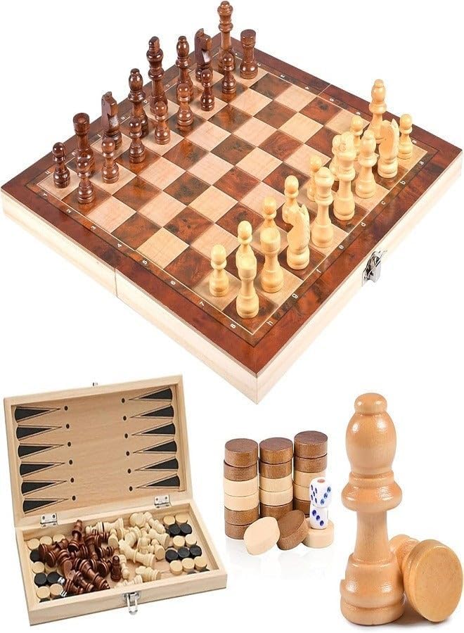 Generic - لعبة شطرنج خشبية 3 في 1 قابلة للطي مع حافظة قابلة للقفل للحماية (حجم متوسط M)