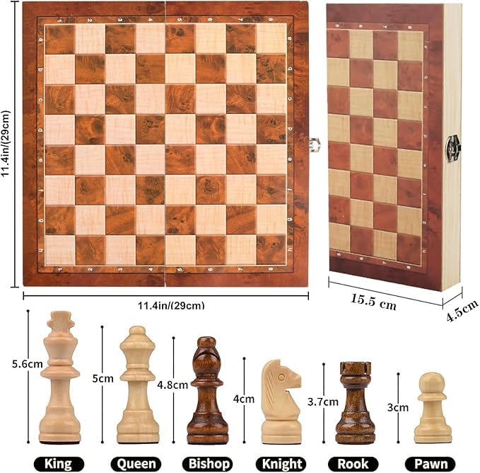 Generic - Wooden Chess Game, 3 in 1 Chess, for Ladies, Backgammon Table, Folding Chess Board, Wood, Lockable Case, Chess Set for Kids, Adults, Party, Travel, 40cm