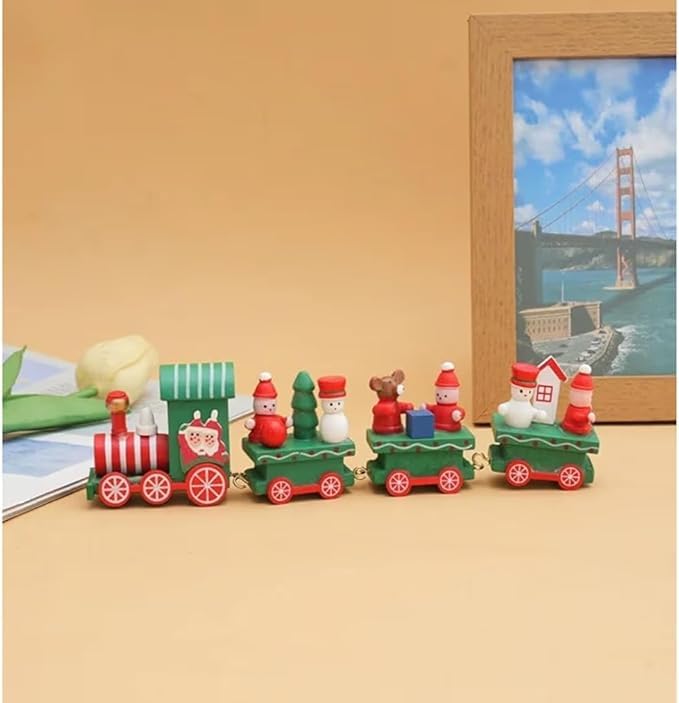 Generic - Wooden Christmas Train with Snowman, Cute Wooden Santa Claus, Festival Toy Santa Claus Train Decorations Christmas