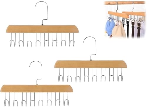 Generic - Wooden Clothes Rack Hanger, Closet Accessories for Organizing Lingerie, Belts, Scarves, Bra, Tops, Underwear, Ties Space-Saving Storage Hanger for Wardrobe (Pack of 3)