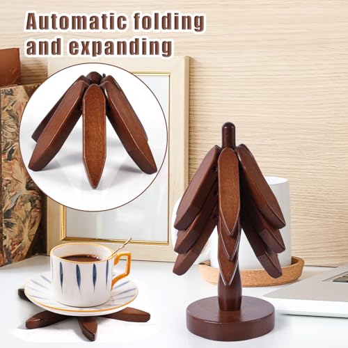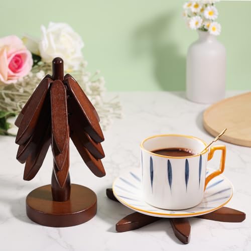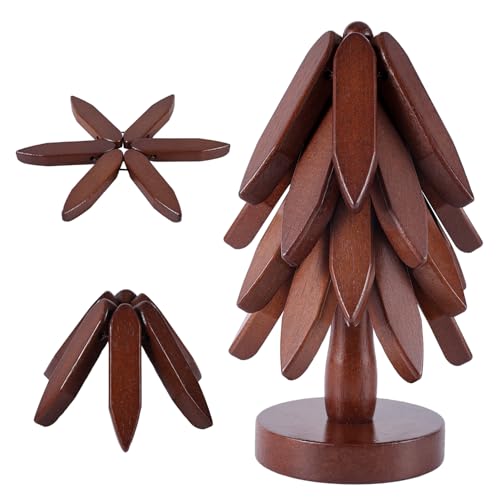 Gosknor - Wooden Coaster Set for Hot Bowls, 4 Layers Tree Shape Coaster with Stand Wooden Coaster for Hot Pots and Pans Wooden Pot Holder for Kitchen