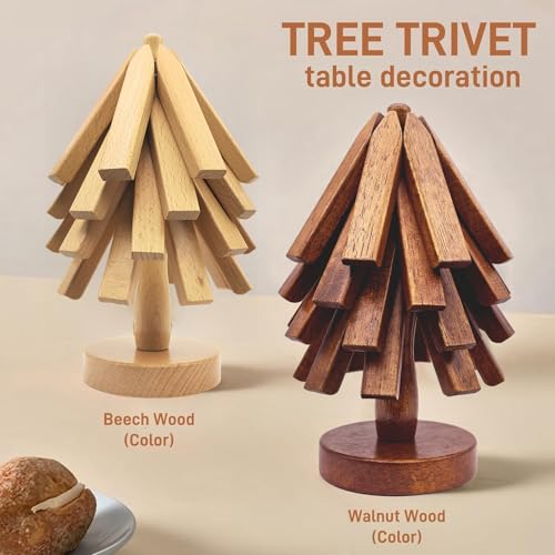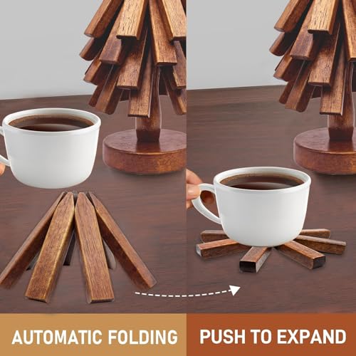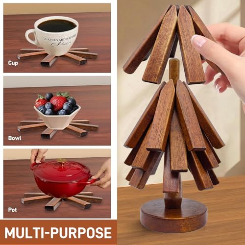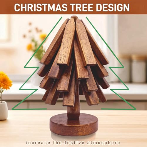 Jevuoyee - Wooden Coaster Set for Tree Art, Christmas Tree Pot Coaster, Wooden Set, Foldable Coaster Pot for Kitchen Pans, Pots and Cutlery (Dark)