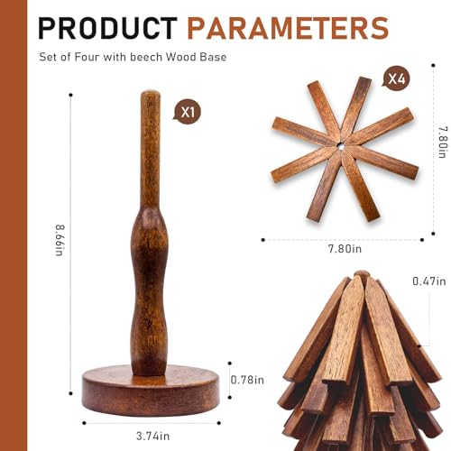 - Heat protection and versatility: This wooden kitchen accessory set contains three heat-resistant coasters for hot pots and pans. Unfolded, each mat has a diameter of 20 cm, making it suitable for all sizes of cookware. Effortlessly protect your tabletops and countertops.