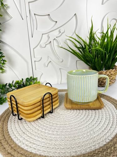 Generic - قاعدة أكواب خشبية مع حامل - قواعد مربعة للمشروبات الساخنة والباردة - حماية أنيقة ومتينة للطاولة بطابع ريفي، مجموعة من 6 قطع (خشبية (2 قطعة)