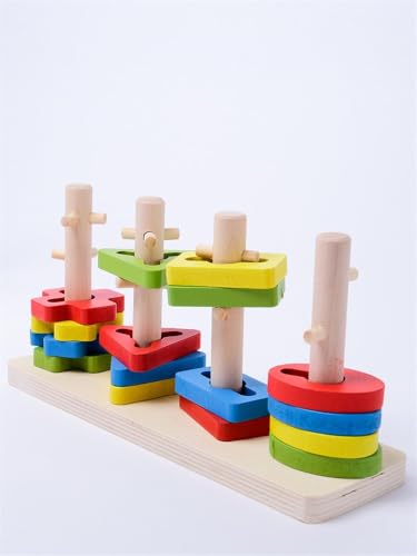 - Made of high quality wood, and stained with bright non-toxic water base paint. Smooth edge specially designed for kids to play safely. Easy to grip and fit Four colorful geometrical shapes (round, square, triangle and rectangle). With this toy, teaching and learning is easy and fun. Different shapes corresponding to four columns, let the baby learn to self-correction and put right match can be set into the corresponding column or take off shapes from the column. Early learning wooden toy set is a perfect exercise for kid's to develop their fine motor skills and hand-eye coordination.