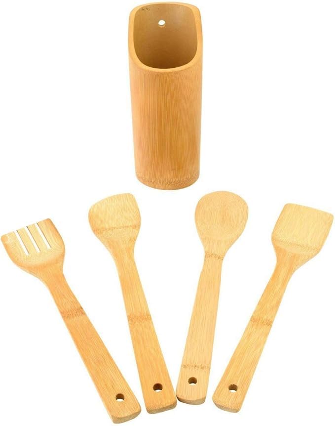 - Cup-Shape Holder for Easy Storage: The included cup-shaped holder keeps your utensils organized and within reach on your countertop, adding a rustic, natural touch to your kitchen decor.