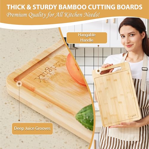 BRIGHTX - مجموعة الواح تقطيع وتقطيع خشبية من خشب الخيزران (كبير وصغير) - الواح تقطيع مطبخ فاخرة مع حامل ومقابض من الخشب الصلب السميك وغير السام وخالية من BPA وغير قابلة للانزلاق للخضروات واللحوم والاسماك