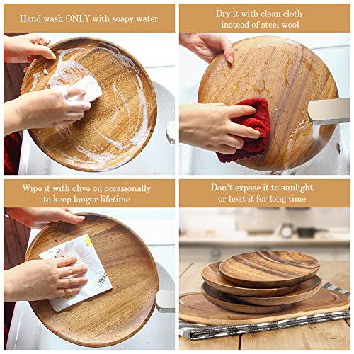 - NATURAL ACACIA WOOD: Made of acacia wood and superior workmanship. Healthy food is safe. These plates are ideal for dinner, fruit and cake.