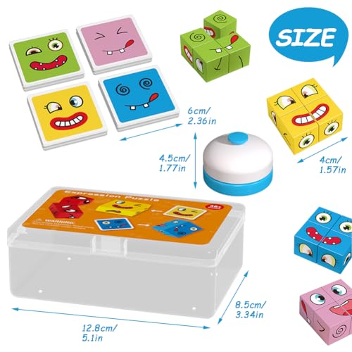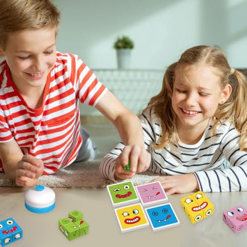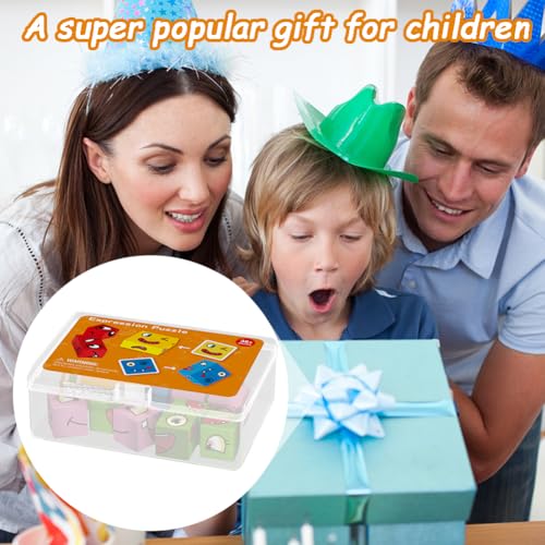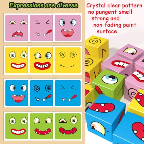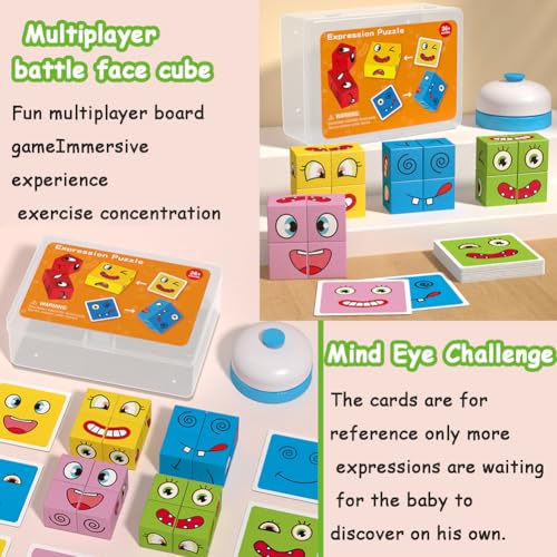 QYEHF - Wooden Expressions Puzzle,Wooden Puzzles Montessori IQ Puzzle,Wooden Express Toy,Cube Educational Toys for Children 3+ Years