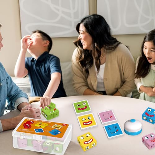 - MULTIPLE WAYS TO PLAY Our wooden expression toy have a variety of ways to play, suitable for single person to play, but also suitable for more than one person to play together, with the peers between the speed of pk, fun interaction, children observe the pattern on the card, using the hands of the blocks to complete the construction, the game to promote friendship and interaction!