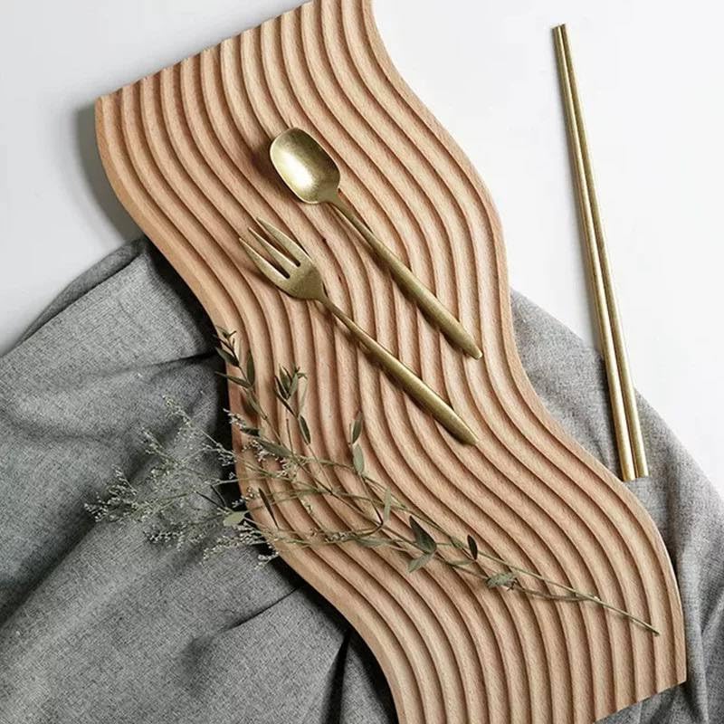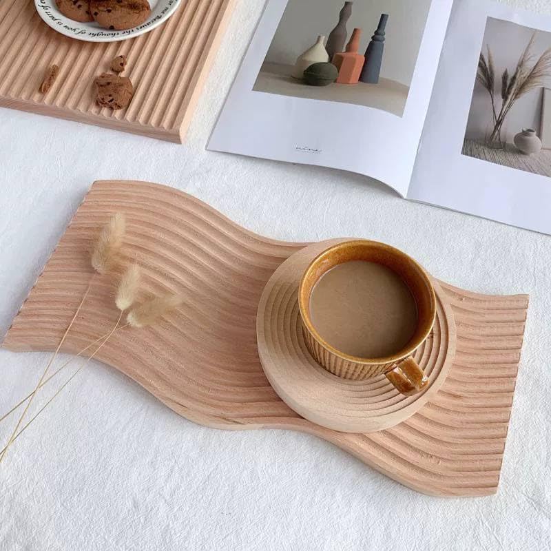 Generic - Wooden Food Tray Wavy Arch Wooden Serving Tray Decorative Tray for Food Breakfast Dinner Party Coffee Table Baking Meat Vegetables (Shape 1)