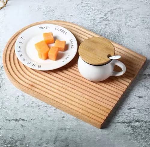 Generic - Wooden Food Tray Wavy Arch Wooden Serving Tray Decorative Tray for Food Breakfast Dinner Party Coffee Table Baking Meat Vegetables (Shape 2)