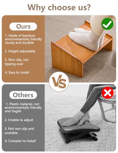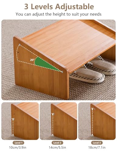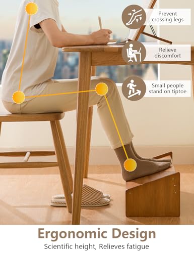 SeiriHelper - Wooden Footrest Desk, Height Adjustable Footrest for Office, Ergonomic Foot Stool Under Desk (Brown)