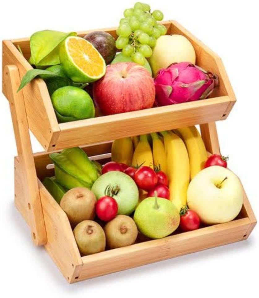 Generic - Wooden Fruit Storage Rack, 2 Tiers, Tiered Design, Kitchen and Countertops