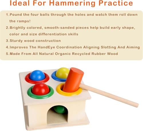 - Promotes motor skills: helps children develop hand-eye coordination skills through hammer and ball play